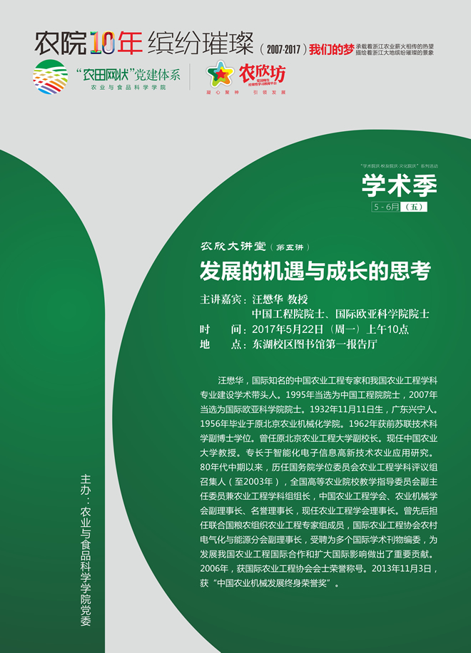 农欣大讲堂(第五讲):中国工程院院士汪懋华《发展的机遇与成长的思考》