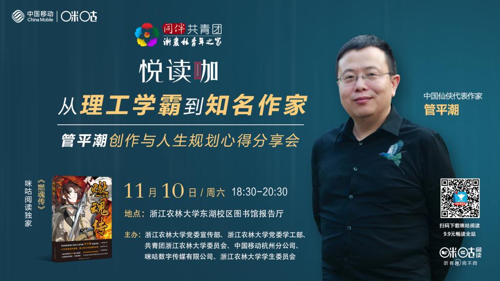 讲座主题:《从理工学霸到知名作家——管平潮创作与人生规划心得分享》