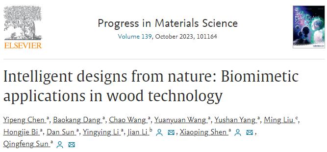 7月22日,化材学院林业工程学科生物质仿生智能研究团队在材料科学领域国际顶尖期刊《Prog. Mater Sci.》(中科院1区Top,IF=37.4)在线发表题为“Intelligent designs from nature: biomimetic applications in wood technology”(木材仿生智能科学与技术)的综述论文。第一作者是该团队博士陈逸鹏,通讯作者为东北林业大学李坚院士、浙江农林大学沈晓萍副教授和孙庆丰教授。浙江农林大学化学与材料工程学院为该论文第一单位和通讯作者单位。