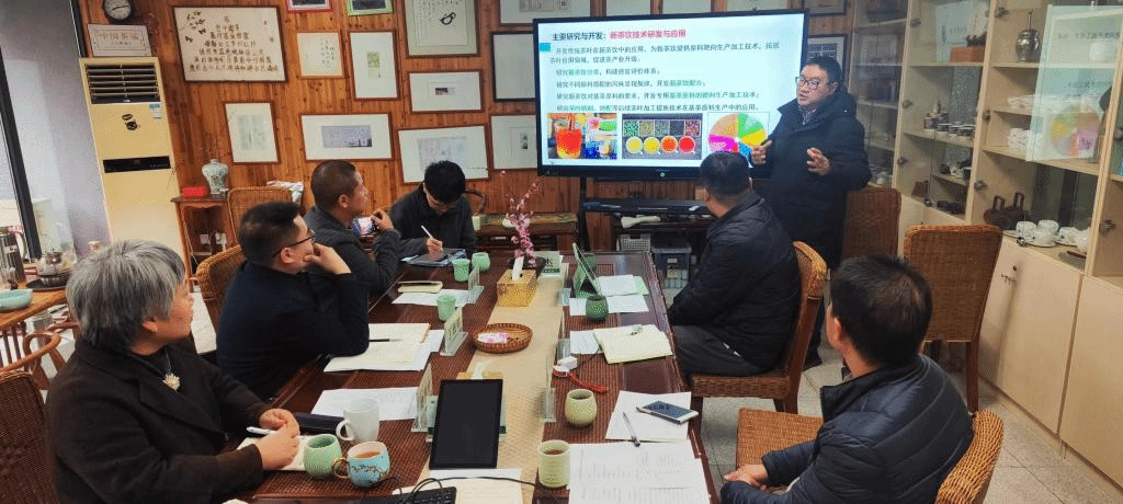 王磊介绍了学院在专业建设、教学条件、科研团队、社会服务、全产业融合几个方面的优势及取得的成绩。丁根明介绍了松阳县的概况及在茶产业发展上的优势特色,希望双方能加强人才培养、产业学院建设、科研平台搭建和技能人才培养等方面的合作。与会教师及来访人员还针对茶业高层次人才的柔性引进、本硕实践教学基地、产业培训项目等进行了深入讨论。