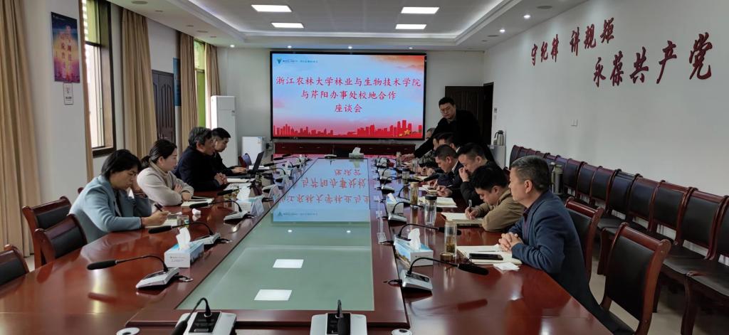 座谈会上芹阳办事处党工委书记郑凯等人员简要介绍了办事处所属辖区的基本概况、经济发展水平和目前农林业发展中遇到的经济植物种植、森林病虫害防治和美丽乡村建设的问题,并指出通过此次现场考察使双方合作的目标更具有针对性和有效性。郑炳松代表学院对双方的未来合作落地充满信心,并表态会组织学院精干科技人员服务于开化的经济发展需求。学院相关负责人还就研学基地建设等事项和对方进行了商讨。
