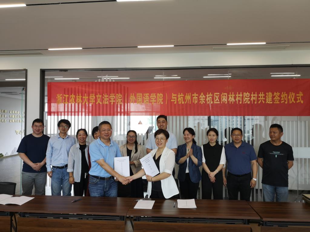 5月26日,文法学院院长鲁可荣带队赴余杭区闲林村开展院村共建签约仪式,文法学院相关负责人,学生办、新闻传播学科、公共管理学科相关负责人参加了此次活动。