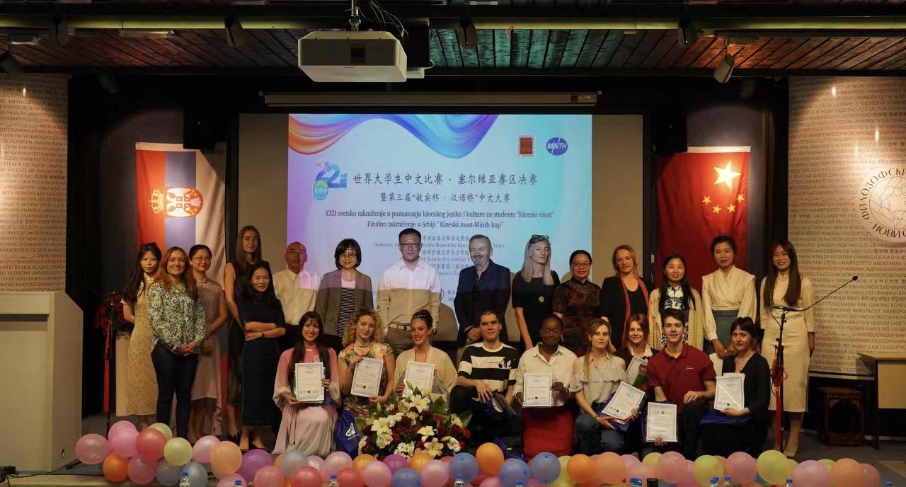 经过激烈角逐,来自贝尔格莱德大学语言学院中文系的李一帆(Iva Ilic)凭借字正腔圆的演讲和优美的古典舞获得高级组第一名,被推荐代表塞尔维亚参加在中国举办的总决赛;来自诺维萨德大学孔子学院的春晓(Tara Tomic)获得初级组第一名,被推荐赴华观摩总决赛。