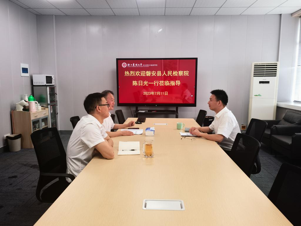 7月11日上午,文法学院与磐安县人民检察院校检合作座谈会在衣锦校区实验楼610会议室召开。文法学院党委书记朱红东,磐安县人民检察院党组成员、政治部主任陈日光等相关领导参加了座谈。