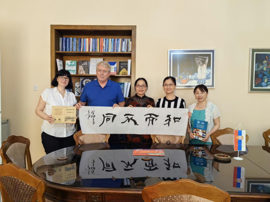 乔尔杰维奇所长对陈秀一行的到访表示欢迎,对诺大孔院的支持表示感谢,还介绍了该所的基本情况。陈秀对国际政治与经济研究所多年的合作与支持表示由衷的感谢,代表诺大孔院赠送了中国书法作品“和而不同”并阐述了其中蕴含的哲学思想。双方还就将来可能拓展的合作项目进行了探讨,对新学年的中文课程开设、高端学术讲座和文化活动等合作计划进行了较为深入的交流并达成了共识。