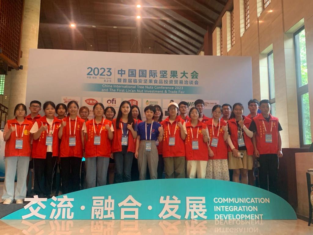 浙江农林大学食品与健康学院作为协办方,与临安区紧密合作,积极参与、服务助力大会。食健学院院长闵伟红、党委书记汪和生及食品学科相关老师应邀参加此次大会,闵伟红教授在会上作了题为“坚果精深加工及在大健康中的作用”的精彩报告,从坚果蛋白营养角度出发,为坚果精深加工技术的研究提供了宝贵思路。学生志愿者们在张娇娇老师带领下,全情投入志愿者服务工作,在会场入口、注册处、演讲厅以及展览区等关键位置,为大会提供各类帮助和支持,为大会的成功举办做出了应有贡献,向国内外嘉宾展示了浙农林大的良好形象。