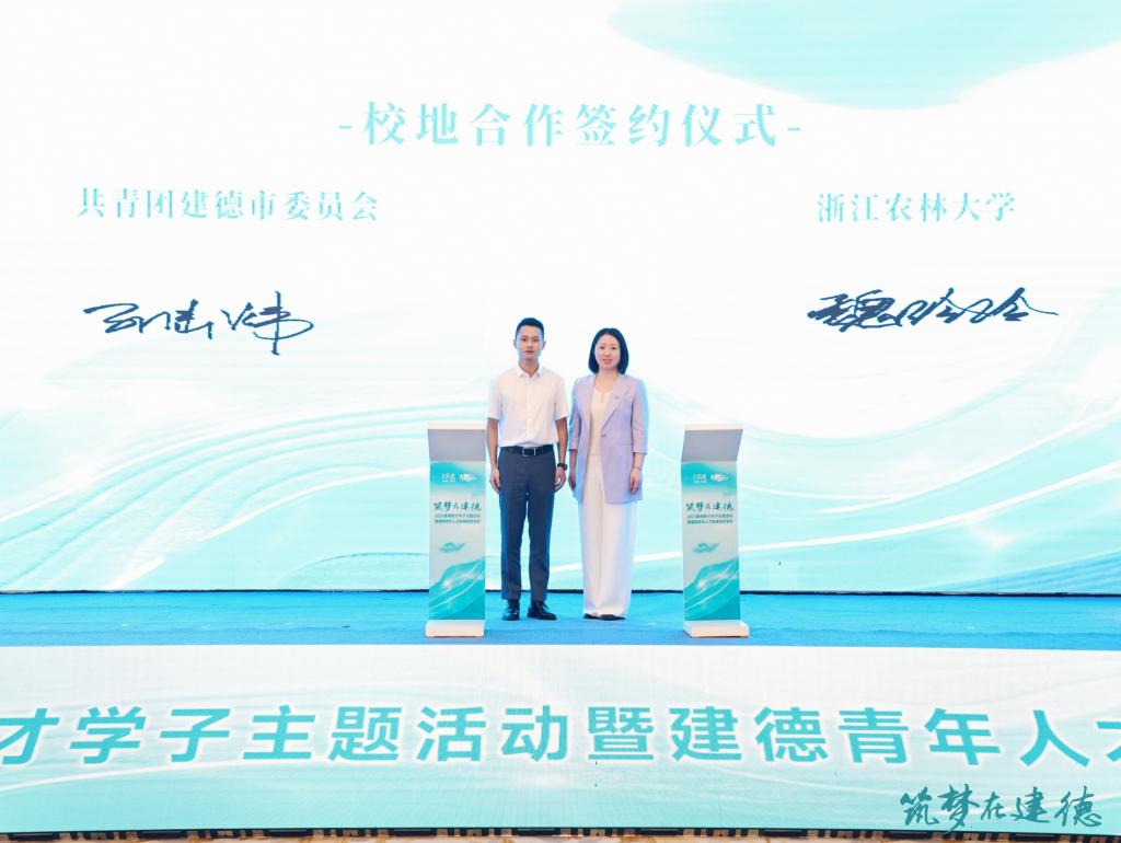 校团委书记魏玲玲与共青团建德市委书记孙陆炜作为双方代表签订浙江农林大学团委与建德市团委校地共青团合作协议,开启浙江农林大学团委与建德市团委校地深度合作新篇章。双方就共建浙江农林大学建德学子工作站、社会实践示范基地,浙江农林大学建德青年志愿服务队达成协议。
