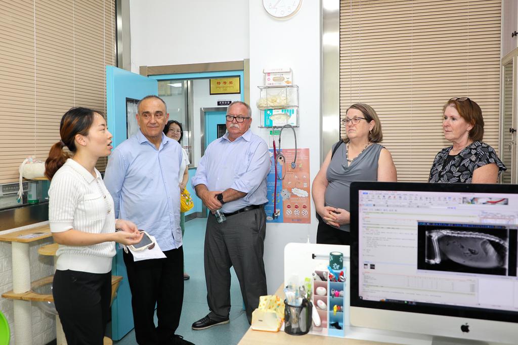 8月24日,应动科动医学院院长宋厚辉邀请,世界兽医协会主席Rafael Laguens和美国兽医协会主席Rena Carlson、美国兽医协会国际联络部主任Elizabeth Sabin等一行4人到动科动医学院访问。教学动物医院执行院长曾欢接待了来访客人。中国兽医协会动物福利分会戚宇舸副秘书长陪同访问。