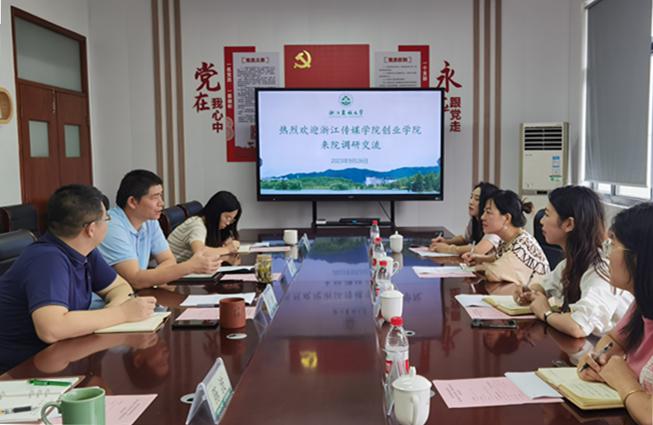 9月26日上午,浙江传媒学院创业学院常务副院长、就业指导中心主任傅梅烂一行4人来我校集贤学院调研座谈。集贤学院院长秦华主持调研座谈会,创业实训中心、创新创业教研部相关人员参加会议。