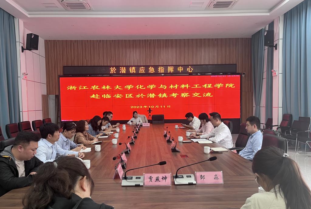 10月11日,化材学院党委书记谢志新带队赴临安於潜镇党委开展党建联建座谈交流。我院党委委员李倩、王星、林业工程学科第三党支部书记雷洪及青年教师代表,於潜镇镇长赵超军、副书记陈健、副镇长司尚荣参加会议。