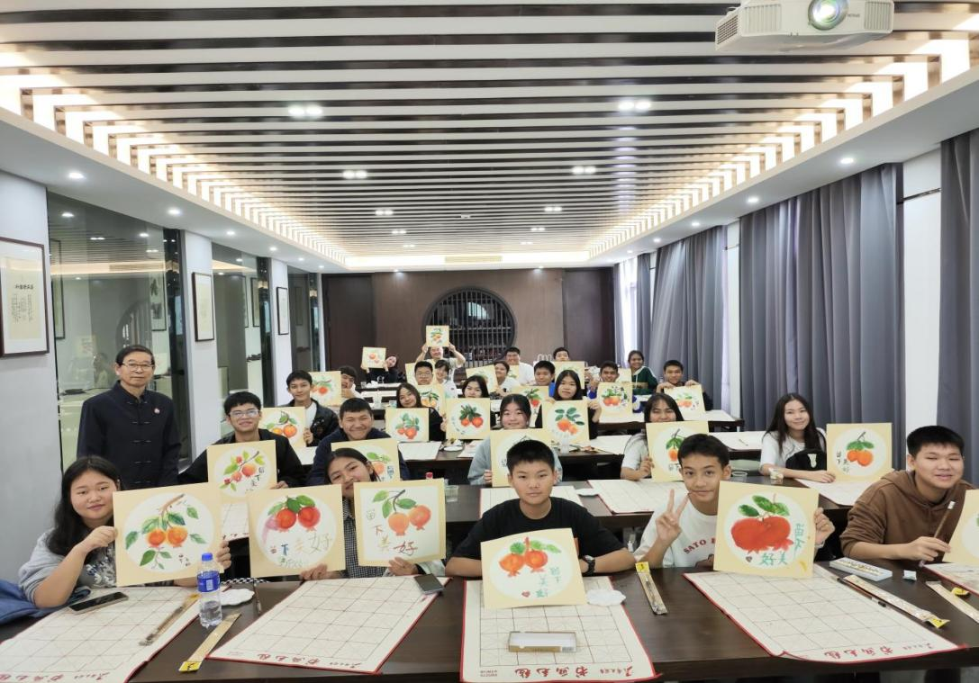 营员们参加了中文、国画、茶艺和国情教育等文化课程,“感知”中国文化的无穷魅力。同学们特别喜欢国画,在中国工艺美术大师、国际生国情教育荣誉导师余成云老师的指导下,绘出金秋特有的石榴,寓意“留下美好”。