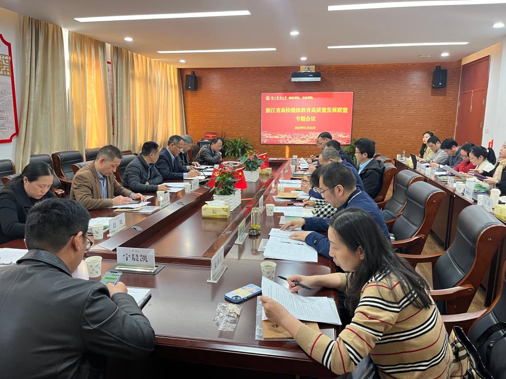 11月21日下午,浙江省高校继续教育高质量发展联盟专题会议在浙江农林大学衣锦校区召开。本次会议由浙江省高校继续教育高质量发展联盟主办,浙江农林大学继续教育学院承办,浙江省教育厅职业教育与成人教育处二级调研员金仁康出席会议,联盟成员单位继续教育学院负责人参加了会议。