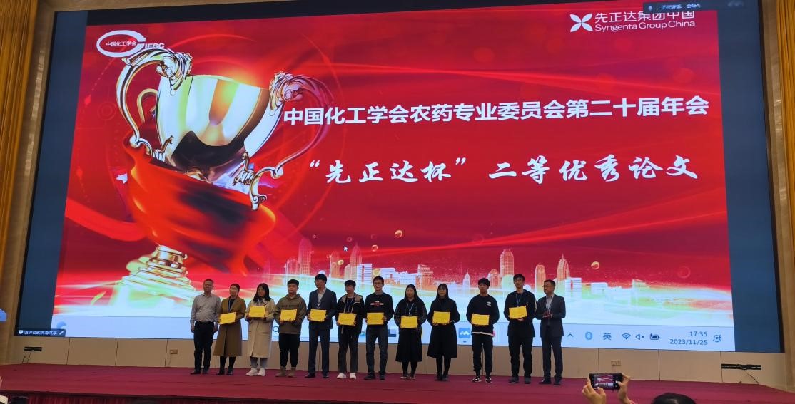 林生院硕士研究生陈智磊、吴云天分别荣获“先正达杯”优秀论文二等奖、三等奖。硕士研究生李雪松作题为“贝莱斯芽孢杆菌TCS001产脂肽类物质抑菌活性及发酵条件优化”学术报告。