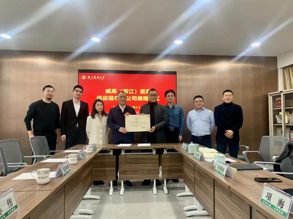 12月11日,威高(浙江)医药供应链有限公司捐赠仪式在环资院、碳中和学院党员之家举行。