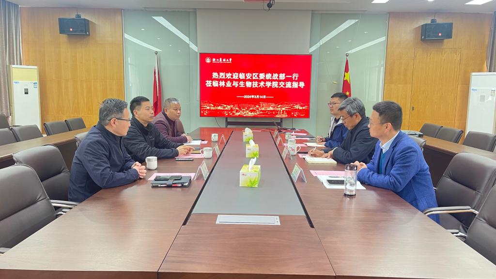 3月14日下午,临安区委统战部副部长、民宗局局长郭胜利一行来林生院交流调研。学院党委书记郑炳松会见了郭胜利一行,学院学生工作负责人,学生办相关老师陪同交流调研。