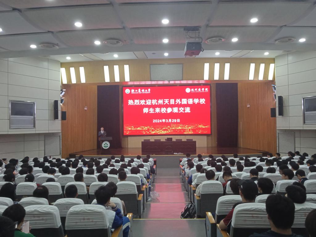 3月29日上午,杭州天目外国语学校700余名师生来校参观交流。农学院学生工作负责人,学生办辅导员及师生代表参加活动。