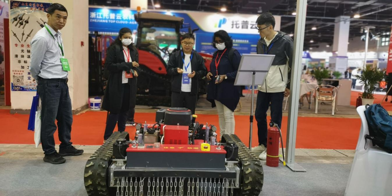 4月26-28日,第二届中国丘陵山区农业机械博览会暨中国(永康)农林装备博览会以“数智农机 创新引领”为主题,以展示推广丘陵山区先进农林装备为核心在浙江永康举办。我校智能农林装备研究团队精心挑选了4LMD-22 电动梳刷式蓝莓采摘收获机、折展式林果振动采收一体机、遥控履带式果园割草机、2BM-3型林木无纺布大小容器苗间自动移栽机、古树名木无损检测探伤仪等五台(套)装备精彩亮相博览会,整个三天的参展期间团队教师及研究生热情周到细致的推介学校农林装备科研成果、积极深入地与参会观众互动,充分展示了我校致力乡村振兴、培养知农爱农人才的良好形象。
