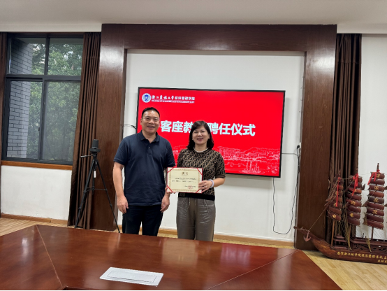 陈劲松围绕人才培养、科学研究、学科平台建设等介绍了近年来学院发展情况;吴伟光表示双方服务方向与业务内容紧密相关,实践教育基地签约为双方进一步合作打下了坚实的基础,学院可以为企业在项目申报、人力资源供给等方面助力;郑萍萍介绍了企业情况,表示将充分发挥企业资源优势为学院师生提供服务。会上,吴伟光和郑萍萍分别代表学院和公司签订实践教育基地协议书,哀建国为郑萍萍颁发经管学院客座教授聘书。