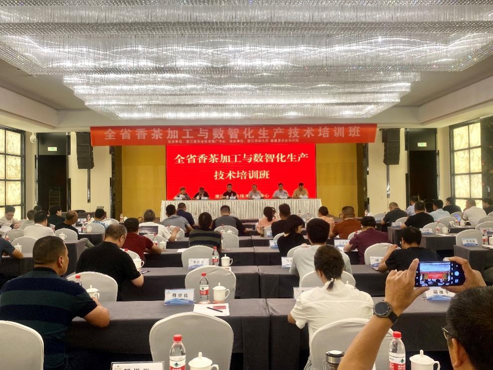7月18至19日,由浙江省农业技术推广中心主办,浙江农林大学、遂昌县农业农村局承办的全省香茶加工与数智化生产技术培训班在丽水市遂昌县举行。省农业农村厅茶叶首席专家、研究员陆德彪,研究员黄伟红,丽水市农业农村局经济作物总站站长叶建军,遂昌县农业农村局副局长朱日周,遂昌县科协副主席叶春辉等出席开班仪式并致辞。
