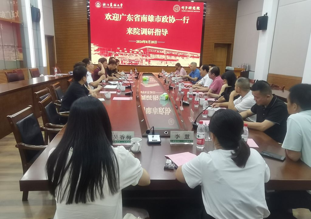 8月28日下午,韶关南雄市政协副主席何长波等一行12人到竹子研究院调研交流。竹研院相关创新团队教师参加座谈交流会,会议由竹研院党总支书记周能寿主持。