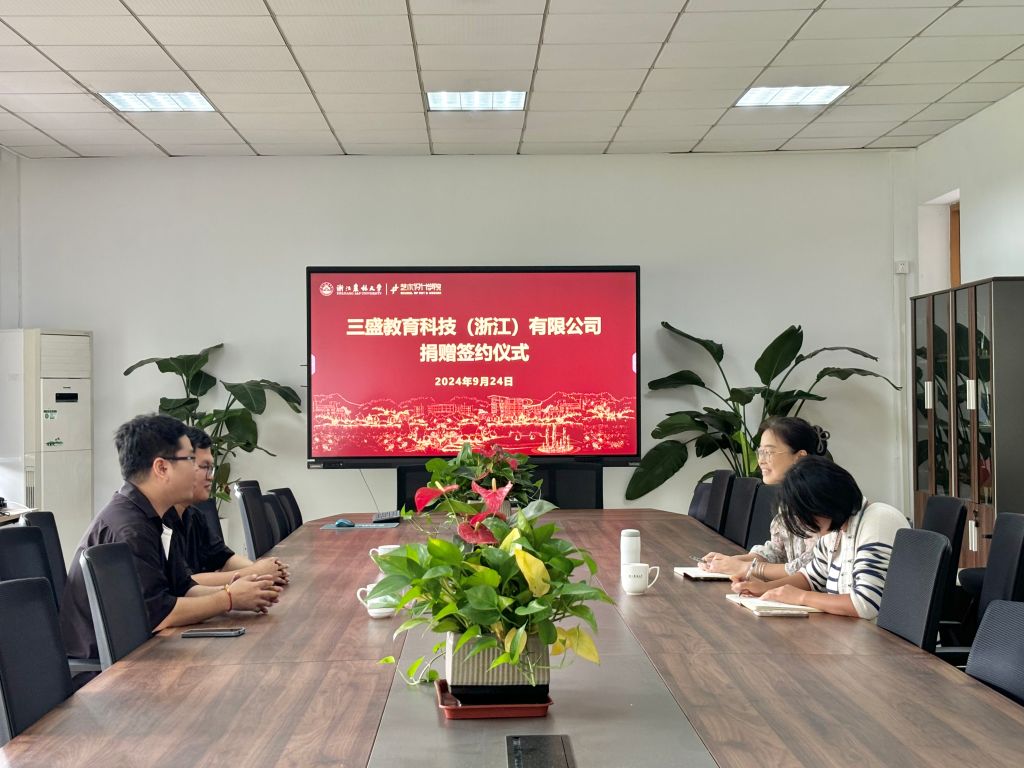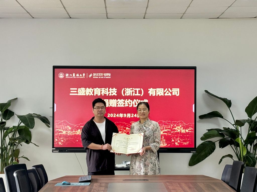 9月24日,艺术学院与三盛教育科技(浙江)有限公司举行捐赠签约协议。三盛教育科技(浙江)有限公司相关负责人白福利、戴佩蓉,艺术学院党委书记黄晓芳、相关负责人及教师代表参加仪式。