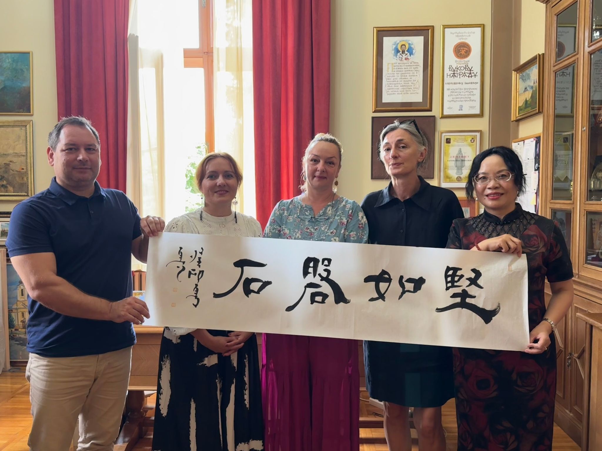 当地时间9月10日,诺维萨德大学孔子学院外方院长伊万娜·捷万契维奇·塞凯露丝(Ivana Živančević Sekeruš)和中方院长陈秀一行走访卡尔洛夫茨语言高中(Karlovci Grammar School),与新任校长德阳·奥利奇(Dejan Orlić)及中文本土教师展开会面并进行深入交流。