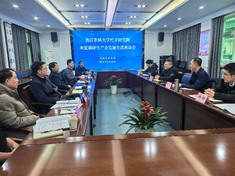 在座谈会上,梅长春对竹子研究院专家一行的到来表示欢迎,对放弃假期专程奔赴宣城开展科技服务表示感谢。他介绍了宣城市竹产业发展情况,介绍了成立长三角(浙北-皖南)“以竹代塑”产业创新联盟的设想,期待加强与浙江农林大学竹子研究院的合作与交流,推动宣城竹产业高质量发展。