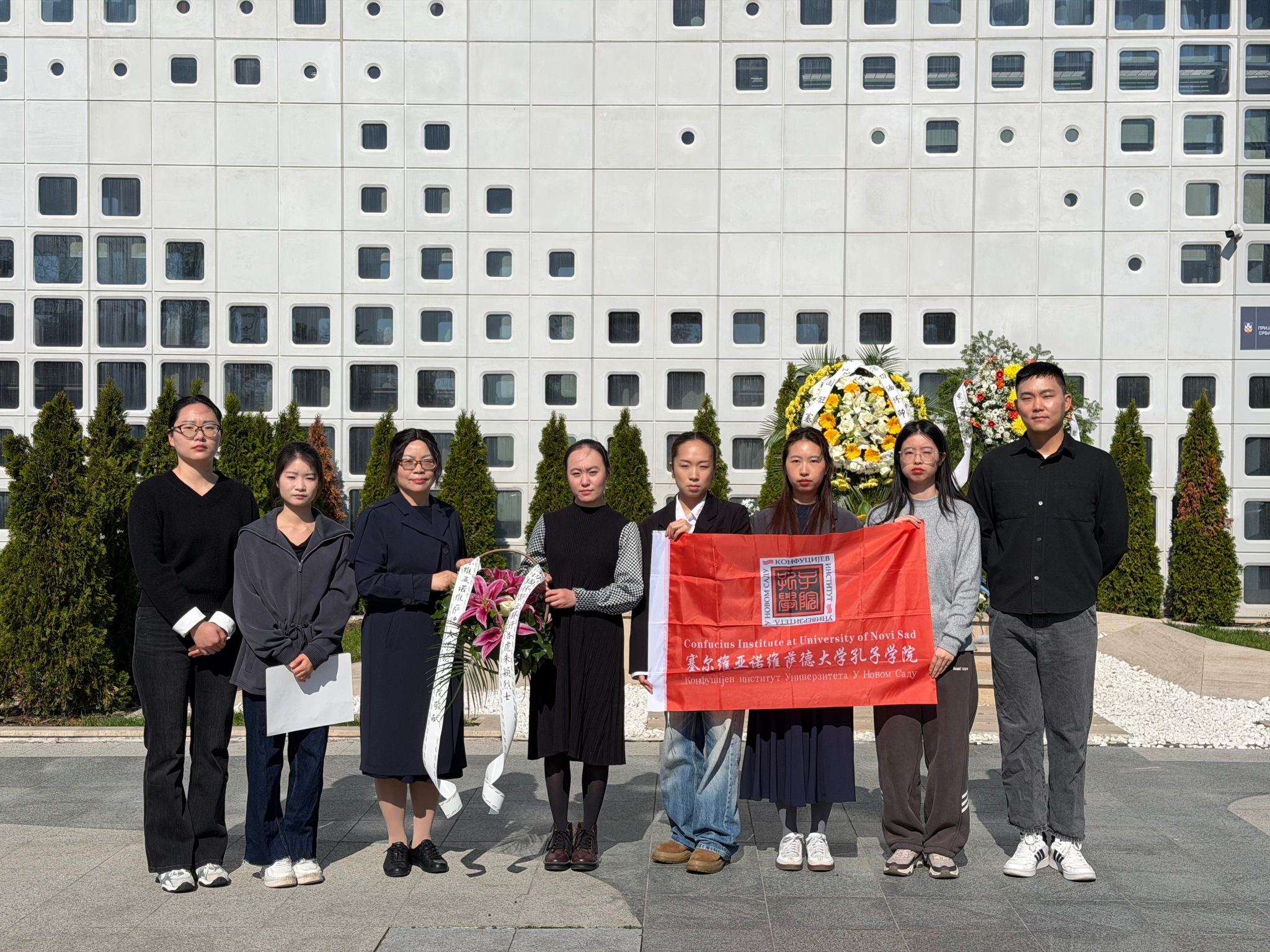 当地时间4月5日,诺维萨德大学孔子学院全体教师前往中国驻南联盟使馆旧址,举行庄严祭奠仪式,深切缅怀1999年北约轰炸中壮烈牺牲的邵云环、许杏虎、朱颖三位烈士。