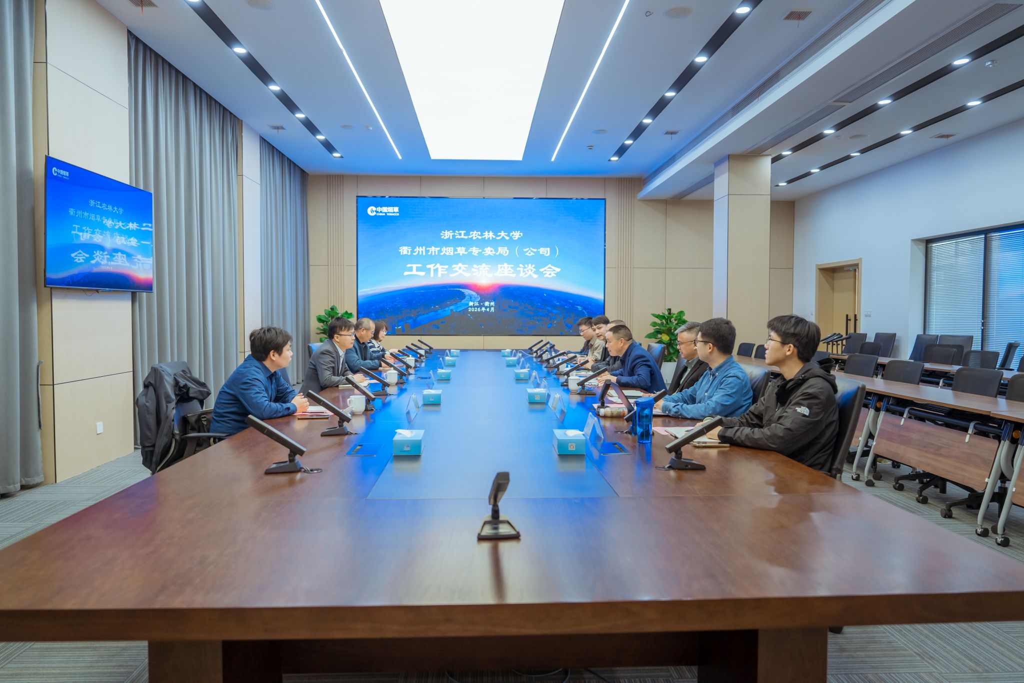 4月2日,数计学院院长冯海林一行赴衢州市烟草专卖局(公司)等单位开展合作交流暨访企拓岗活动。衢州市烟草专卖局(公司)局长廖明景、浙烟大数据研究院衢州分院院长刘阳等参加交流活动。