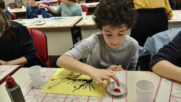 11日,诺大孔院为市图书馆汉语教学点的近30名小学生举办了一场别具特色的国画体验活动。志愿者以王安石的《梅花》为主题,详细地讲解了《梅花》的具体含义,并教授学生们如何使用口和手来“吹画”梅花。孩子们感到无比新奇和激动,跃跃欲试。大家在彩纸上吹动着墨色的旋律,用手指点出大大小小的红梅。不久,一幅幅栩栩如生的梅花就呈现在彩纸上了。