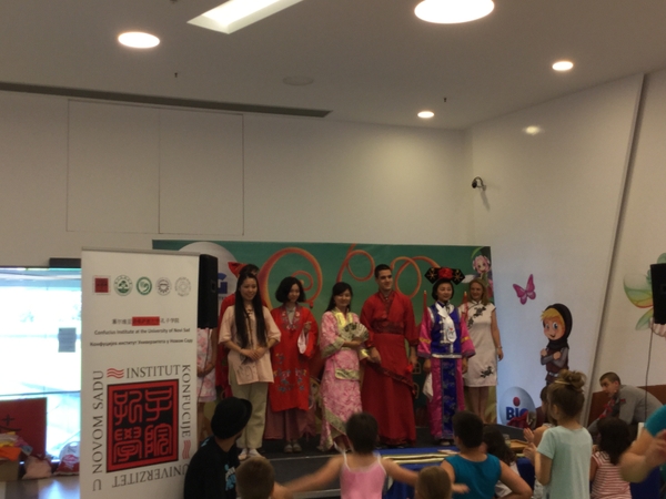 当地时间7月2日下午,根据塞尔维亚最大儿童夏令营Novosadsko Decije Leto的安排,诺维萨德大学孔子学院在当地最大购物商城Big Center,用不同的方式呈现丰富多彩的中国文化,带领200多名小朋友和当地市民快乐“穿越”源远流长的中国文化。