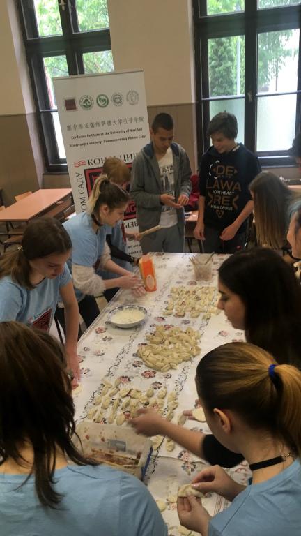 当地时间4月29日,塞尔维亚诺维萨德大学孔子学院在沙巴茨(SABAC)高中汉语教学点举办了首次中国饮食文化推广活动---包饺子大赛。