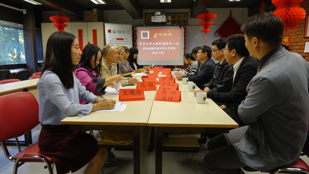 当地时间10月16日,东北大学副校长王福利一行5人访问诺维萨德大学孔子学院,了解当地的汉语教学及文化推广情况,调研孔院在智能化信息技术方面的需求。