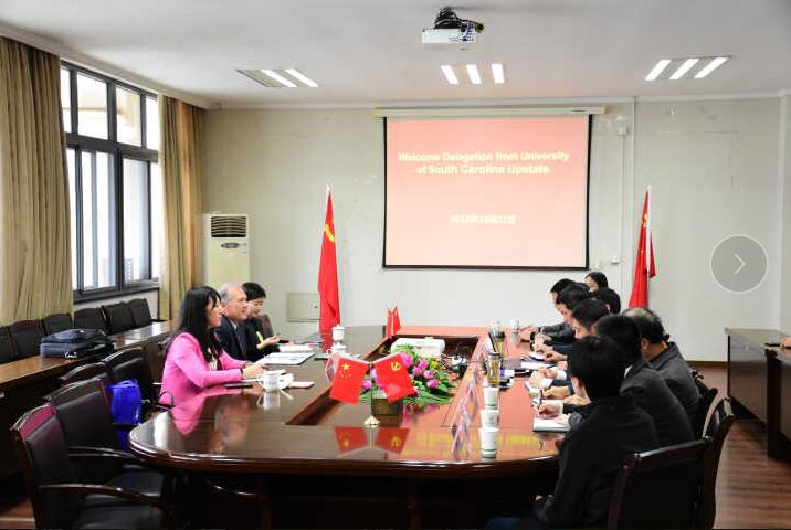 理学院院长周国泉首先代表学院对Clifton P. Flynn教授表示欢迎,详细介绍了学院的发展程、学科专业、教师团队、科研与教学工作、学生就业等情况。会前,Clifton P. Flynn还参观了学院的文化氛围建设和光学工程学科的科学研究成果展。理学院近年来的快速发展以及所取得的成绩受到了Clifton P. Flynn教授的高度赞赏及肯定。Clifton P. Flynn教授详细地介绍了南卡罗莱纳大学上州分校的相关情况,特别是各专业的核心课程、国际合作交流政策以及国际生在该校的学习生活相关情况。南卡罗莱纳大学上州分校和理学院的信息与计算科学专业和应用统计学专业早已有“2+2”的合作。会上双方进一步确认了数学和统计学方面相对应课程的一致性,并初步达成了一个月游学交换的合作愿意,为下一步双方在师资共享以及学生出国读研方面的深度合作奠定了良好的基础。