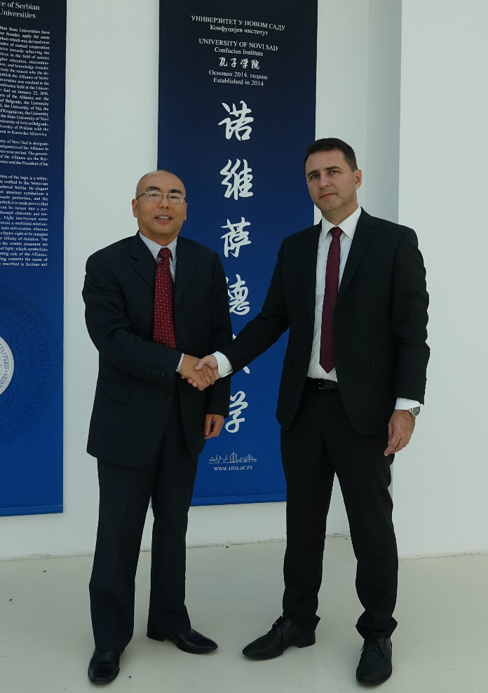 德扬•亚克西奇校长对孔院教学工作给予了高度肯定,希冀今后继续巩固和发展合作。他表示,已经与孔子学院总部副总干事马箭飞教授以信函方式签署确认了《关于合作设立诺维萨德大学孔子学院的协议》(延期五年),诺维萨德大学十分感谢中国以及孔子学院总部的支持与重视,塞尔维亚处在一个特殊的外交位置,诺维萨德大学与孔子学院的合作对于两国友好交往有着十分重要的意义。德扬•亚克西奇校长还对诺大孔院的合作建设单位浙江农林大学邀请他参加六十周年庆典表示感谢。