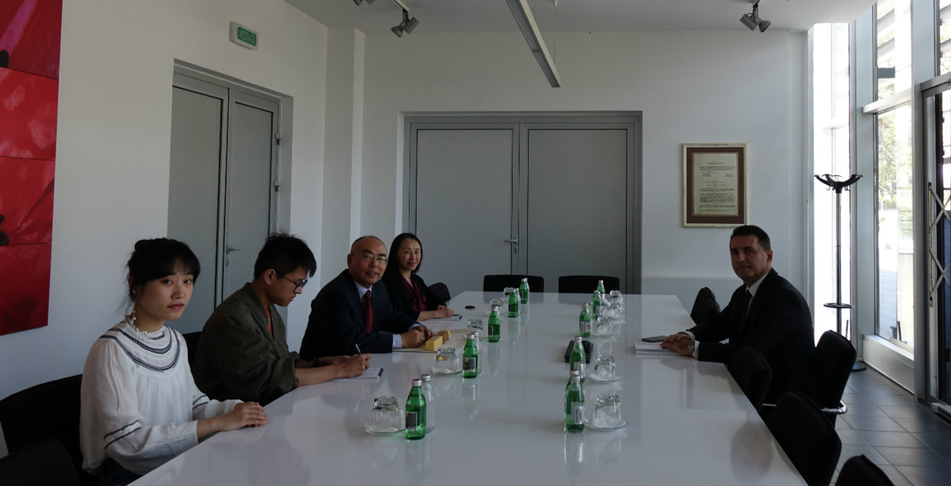 近日,塞尔维亚诺维萨德大学新任校长德扬•亚克西奇教授(Dejan Jakšić)在校长会议室会见诺大孔子学院中方院长陈晦及部分汉语教师,并就继续推进汉语教学及开展中塞教育文化交流工作进行座谈。
