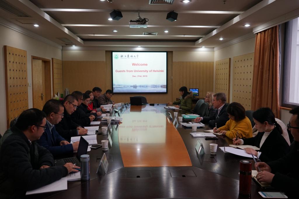 Helena Korpelainen教授介绍了即将与学校展开合作的研究生项目,双方将联合培养农林方向的硕士研究生。双方还商议了即将开展合作的赫尔辛基大学暑期项目,并探讨了成立可持续发展联合实验室的可能性。
