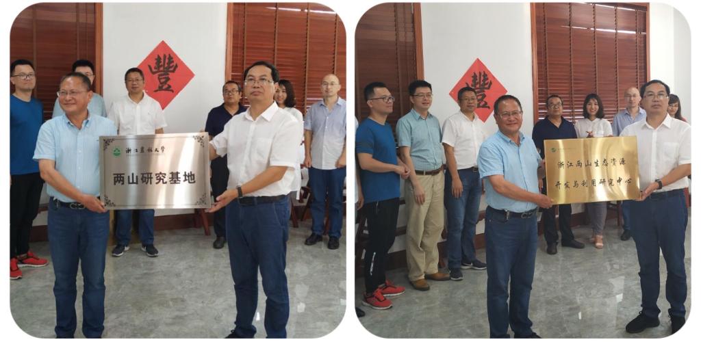 交流会上,与会人员围绕“两山理论”研究和大花园建设研究等具体领域进行了热烈而深入的研讨交流。双方表示将重点围绕两山理论研究和生态产品价值实现机制等方面,共建研究基地开展持续合作研究。最后,王长金代表文法学院、刘克勤代表中国(丽水)两山学院分别互授“浙江农林大学两山研究基地”和“浙江两山生态资源开发与利用研究中心”两大研究机构牌匾。