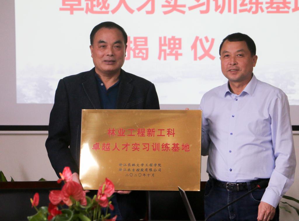 金春德和胡志庆代表院企双方签订了《“党建+产学研”院企战略合作框架协议》,并共同为“林业工程新工科卓越人才实习训练基地”揭牌。同时,学院聘请胡志庆董事长担任客座教授,郑华峰人力总监为职业规划指导老师。永吉公司向学校教育基金会进行了首批公益捐赠,主要用于支持大学生实习实践活动。