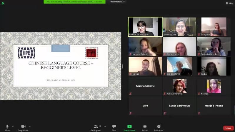 塞尔维亚国际政治经济研究所中国问题研究专家卡塔琳娜·拉基奇(Katarina Zakic)博士代表所长布拉尼斯拉夫·乔尔杰维奇(Branislav Dordevic)致开班词,欢迎各位学员参加汉语班学习,塞尔维亚与中国的各方面合作交流将会进一步加深和发展,学习汉语能让学员们更全面的了解中国、增进交往,希望大家珍惜学习机会,努力学好汉语,为提升国际合作交流的语言能力奠定基础。她表示,这次开班,是国际政治经济研究所与诺维萨德大学孔子学院签署合作协议两年来的又一个具体成果,获得了布拉尼斯拉夫·乔尔杰维奇所长和孔子学院陈晦院长的大力支持。目前采用线上授课方式,待疫情结束,授课将转为线下进行。