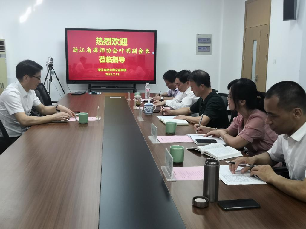 叶明对法学学科的发展成果表示肯定,指出我校法学学科要进一步突出“”生态“环境”“乡村”特色,主动联系对接人大、生态环境等职能部门需求,为服务乡村振兴、生态文明、践行“两山”理念和浙江省打造“共同富裕”示范区培养法治人才主动增强农林“贡献度”“辨识度”;同时指出,法治人才培养要坚持理论和实践相结合,努力提升法科生的创新能力、社会适应和法治实务能力。