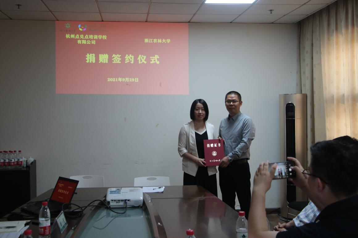 活动后,举行了杭州点兑点培训学校有限公司的捐赠仪式。作为“同伴”青年工作室入驻团队的校外企业团队,杭州点兑点热心公益事业,捐赠教育基金用于资助青年学生考研。